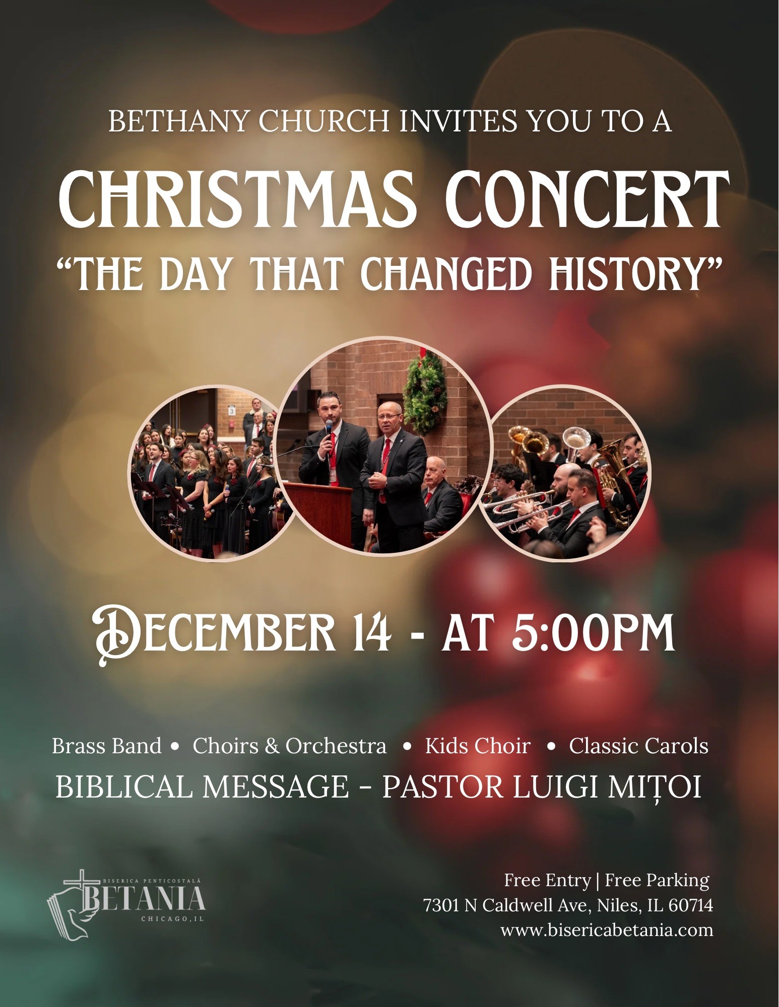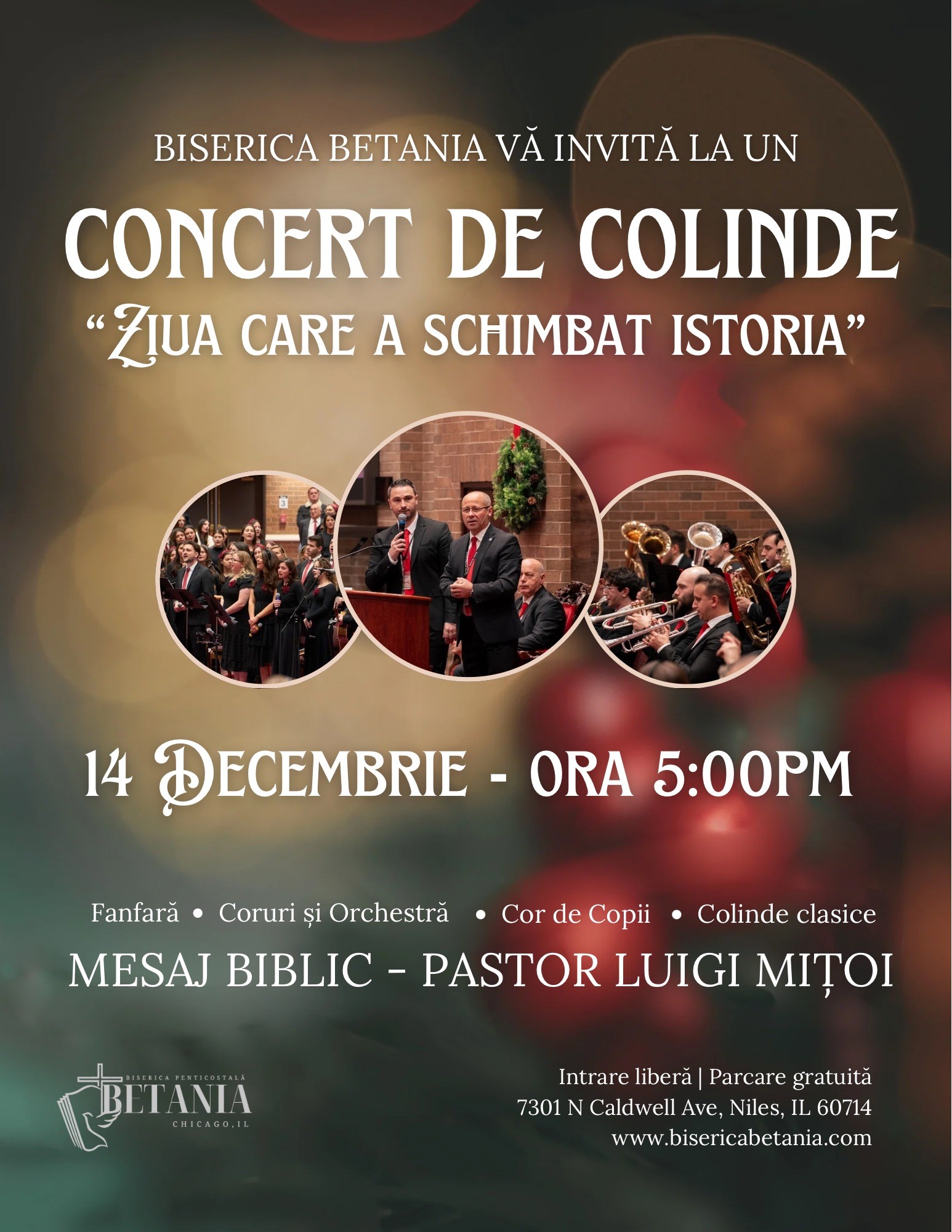 - Duminică, 14 dec. – Concert Colinde 5PM. Pentru a trimite invitații online accesați aceste link-uri: INVITAȚIE EN sau INVITAȚIE RO. Pentru a inscrie la masă persoanele invitate vă rugăm accesați acest formular.